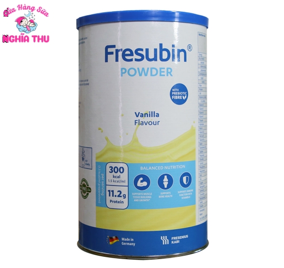 Sữa Fresubin Powder dạng bột được sản xuất theo dây chuyền công nghệ hiện đại bậc nhất thế giới bởi hãng Fresenius Kabi Bidiphar. Sản phẩm chứa thành phần giàu dinh dưỡng giúp bệnh nhân mau hồi phục, có thể sử dụng theo đường uống năng lượng cao, bổ sung chất xơ không lactose và gluten.