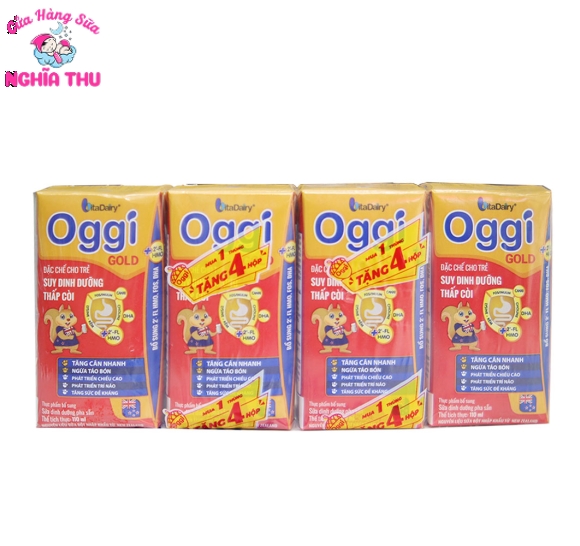 Oggi Gold dành cho trẻ suy dinh dưỡng, thấp còi dùng để thay thế bữa ăn phụ, bổ sung cho chế độ ăn hằng ngày, giúp tăng cường năng lượng, protein và các vi chất dinh dưỡng, hỗ trợ tăng cân, tăng chiều cao, phục hồi thể trạng và phát triển khỏe mạnh. Vì vậy trẻ nên uống Oggi hàng ngày để bù đắp năng lượng thiếu hụt từ đó giúp con tăng trưởng và phát triển.