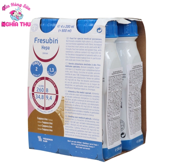 Fresubin Hepa Drink Cappuccino chứa ít natri, không chứa gluten và gần như không chưa lactose, purin và cholesterol. Do đó, Fresubin